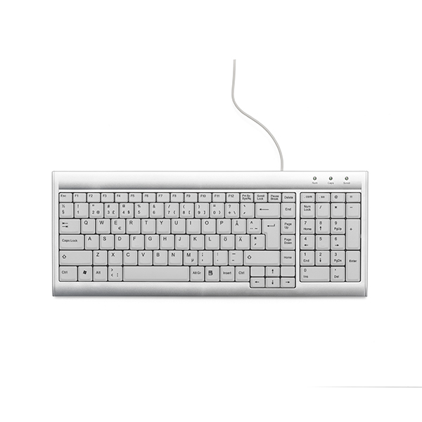 Tack vare detta slimmade tangentbord med touchknappar behöver du ej lyfta dina händer onödigt högt eller djupt för att skriva. Tangentbordet är enligt arbetsmiljöverkets rekommendationer ljust för att underlätta arbete vid datorskärm och pappersarbete.